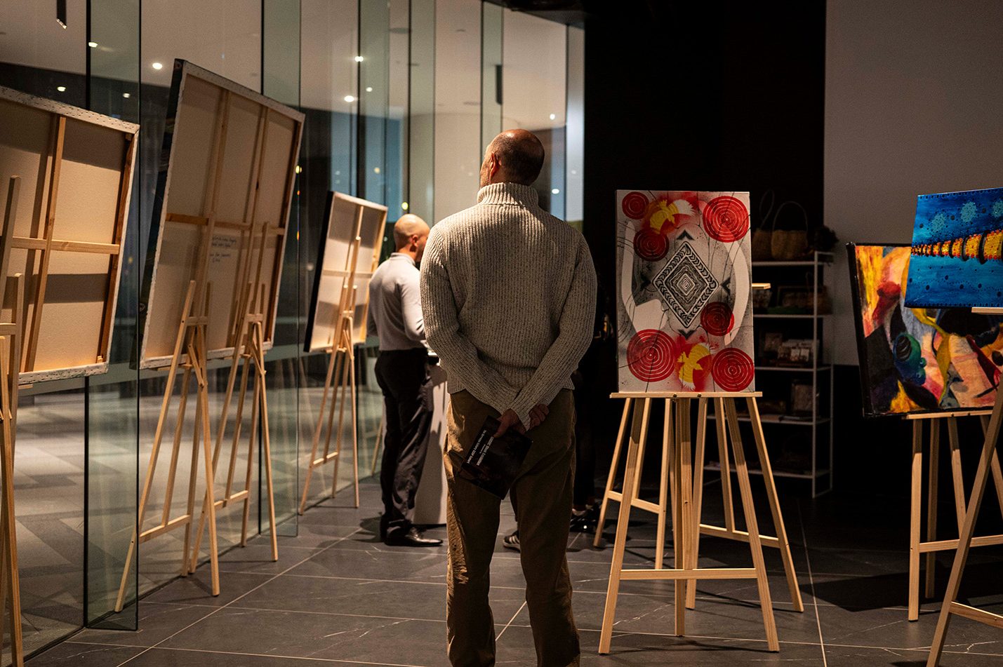 Experience the vibrancy of First Nations art in the heart of the city at our pop-up installation at Brisbane Quarter, 300 George Street. Located on the ground floor, this rotating exhibition showcases a dynamic selection of works by our collective of First Nations artists, offering fresh perspectives and powerful storytelling with every visit. Open to the public, it’s a unique opportunity to connect with Culture, creativity, and contemporary Indigenous expression right in Brisbane’s CBD.
